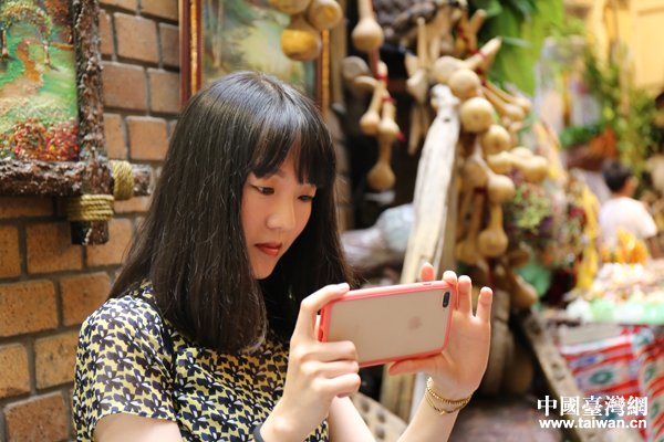 90后台湾编剧李诗淇用手机进行创作。(中国台湾网 王怡然 摄)